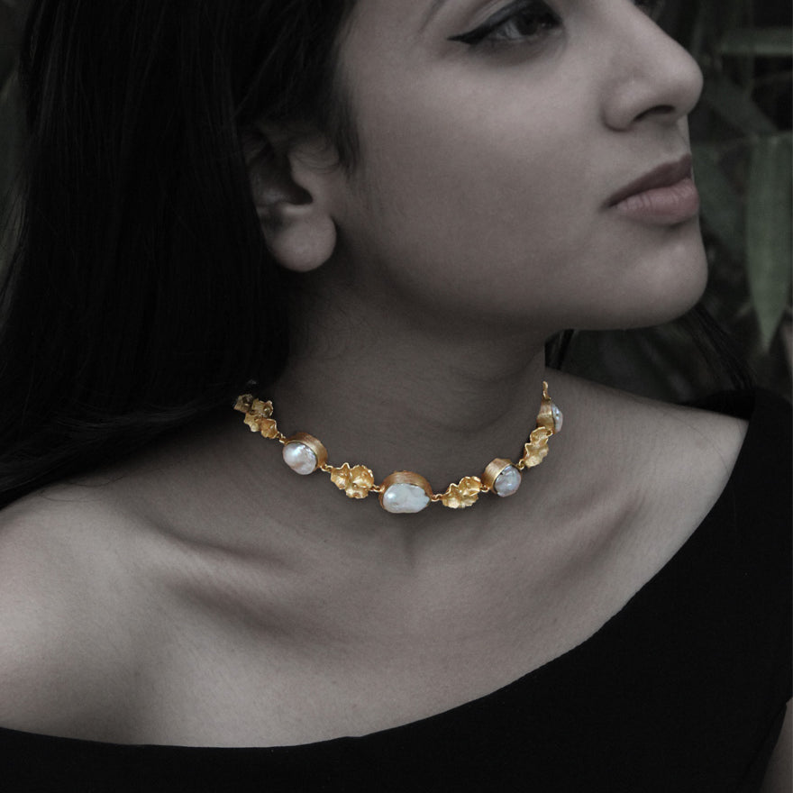 Embrace the Opulence of Baroque-Inspired Jewelry. Our artisans meticulously handcraft each piece, adorning South Sea pearls on 18k gold-plated brass. Inspired by the elaborate Baroque architecture of 17th-century Europe, this collection exudes timeless elegance and sophistication. Elevate your style with Barroco, where every piece is a masterpiece of intricate design and luxurious craftsmanship.