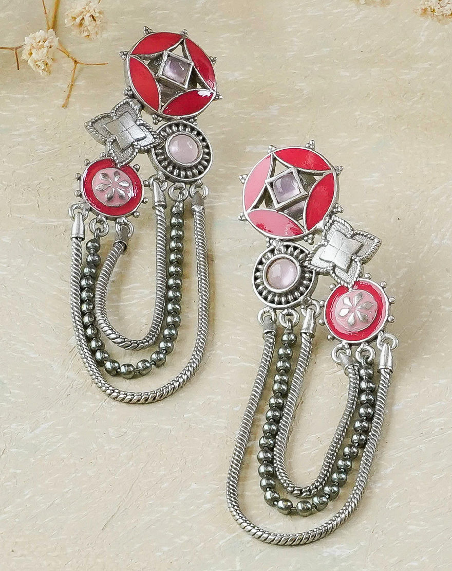 3. These earrings are handcrafted using brass and is silver plated with antique polish on it.