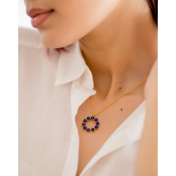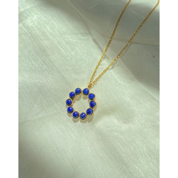 Chloe means blossom. This beautiful and dainty necklace is handmade using finest lapis lazuli which are feather light in weight on 18k gold plated brass.