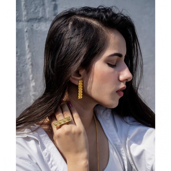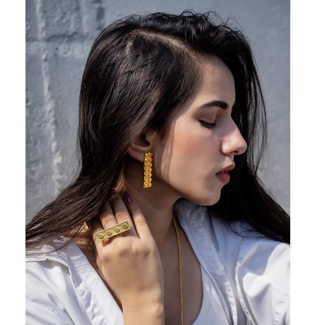Lego Horizontal Ring Gold – Handcrafted metal ring inspired from Lego Bricks on gold plated brass, this contemporary ring goes very well with your western look and clean silhouettes. Wear and play Lego!