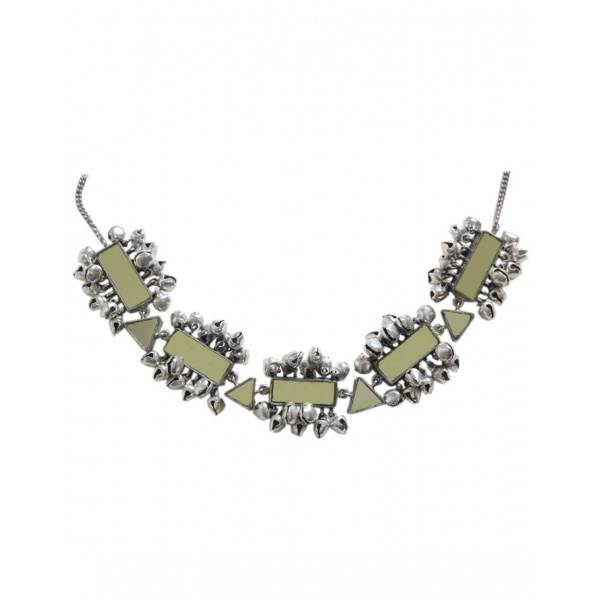 Silver Mirror Choker : Statement making choker handcrafted using silver plated metal with mirrors and ghunghroos