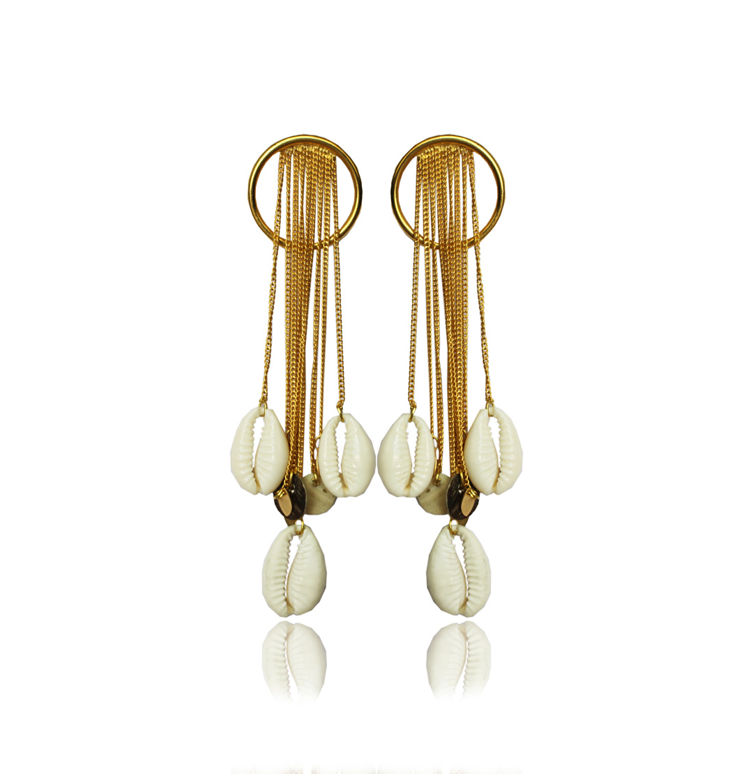 Summer Shell Coachella Earrings : Handcrafted summery tassel earrings, made using cowrie, shells and gold tassels on 1 micron gold plated brass. A perfect breezy pair of earrings for your beach vacation.