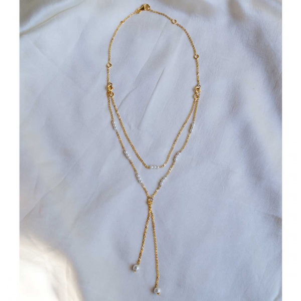 Tiffany Pearl Necklace – Its a beautiful and classic pearl necklace which is a must have for your wardrobe. It is hand made with rice pearls and 22k gold plated sterling silver chain.