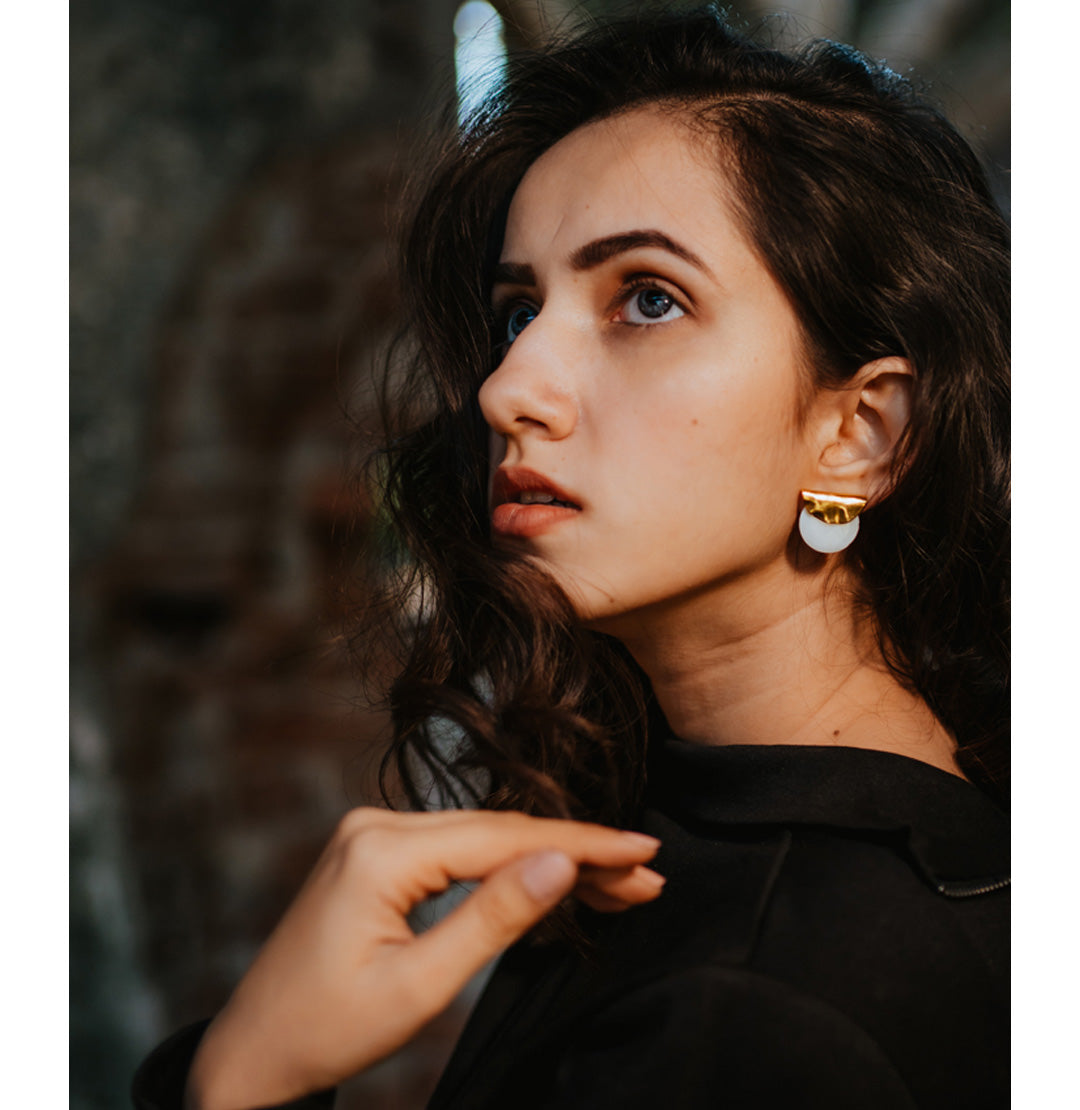 Aaida Studs Mini – Handcrafted statement making studs made using 1 micron gold plated brass covered on the natural mother of pearl shell. From our limited collection ECHO.
