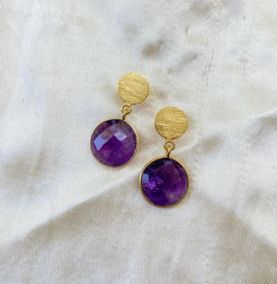 Handcrafted earrings made out of Amethyst Agate stone in 925 pure silver and 18k gold plating. A must have pair as everyday earrings in your wardrobe, pair it with our Anastasia Necklace from the same stone. A perfect gift to someone you love or yourself.