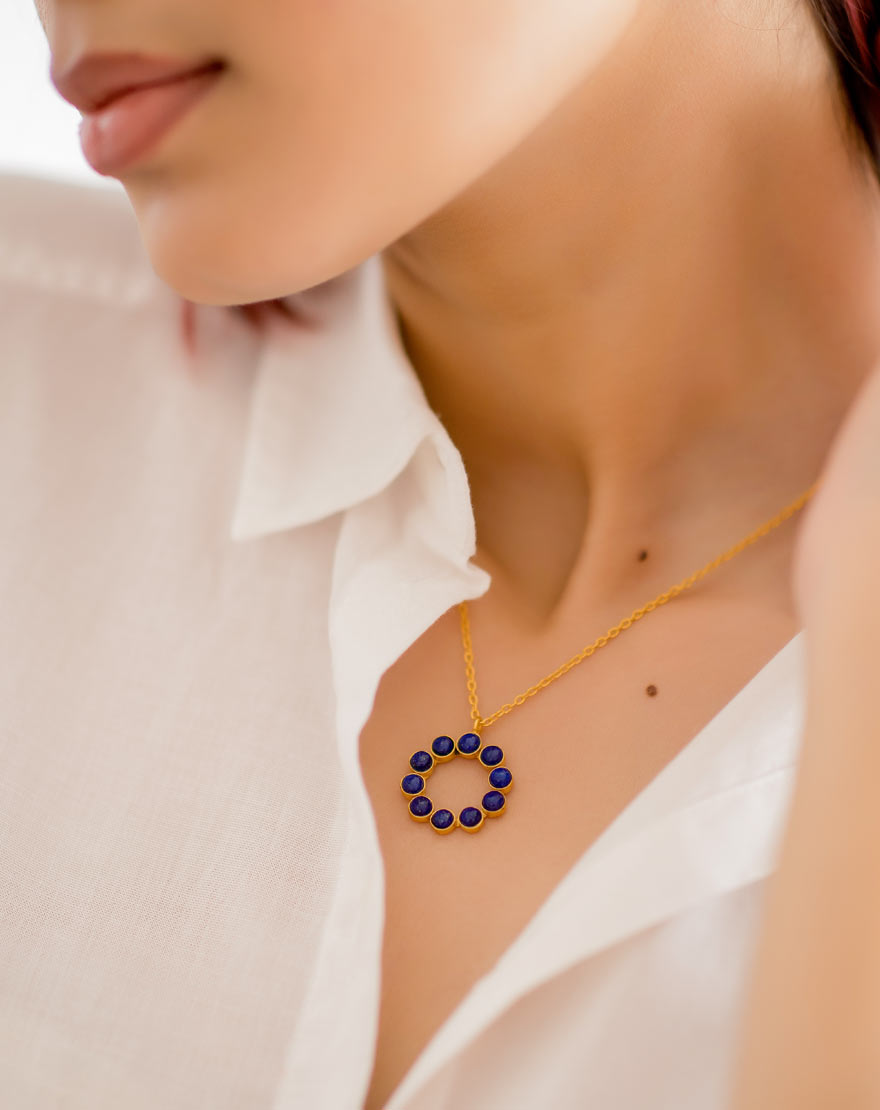 Chloe means blossom. This beautiful and dainty necklace is handmade using finest labradorite which are feather light in weight on 18k gold plated brass.