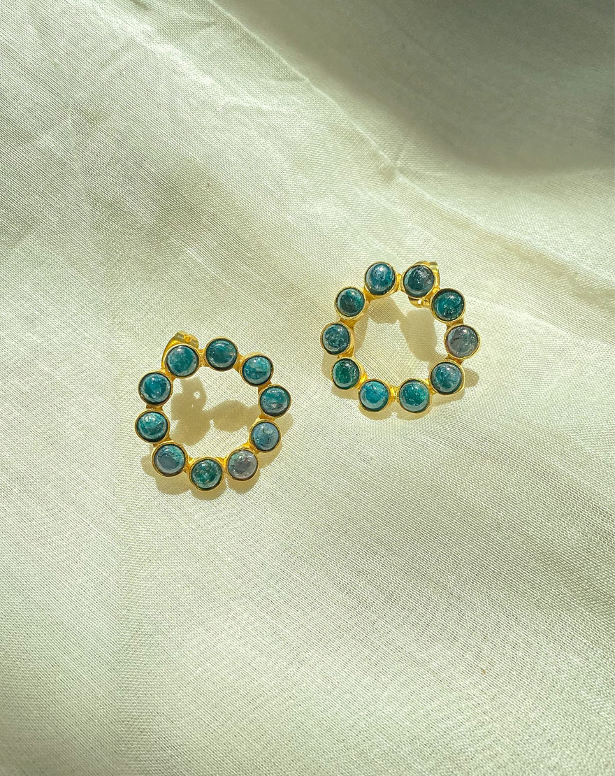 Chloe means blossom. These beautiful and dainty earrings are handmade using finest emerald agates which are feather light in weight on 18k gold plated brass.