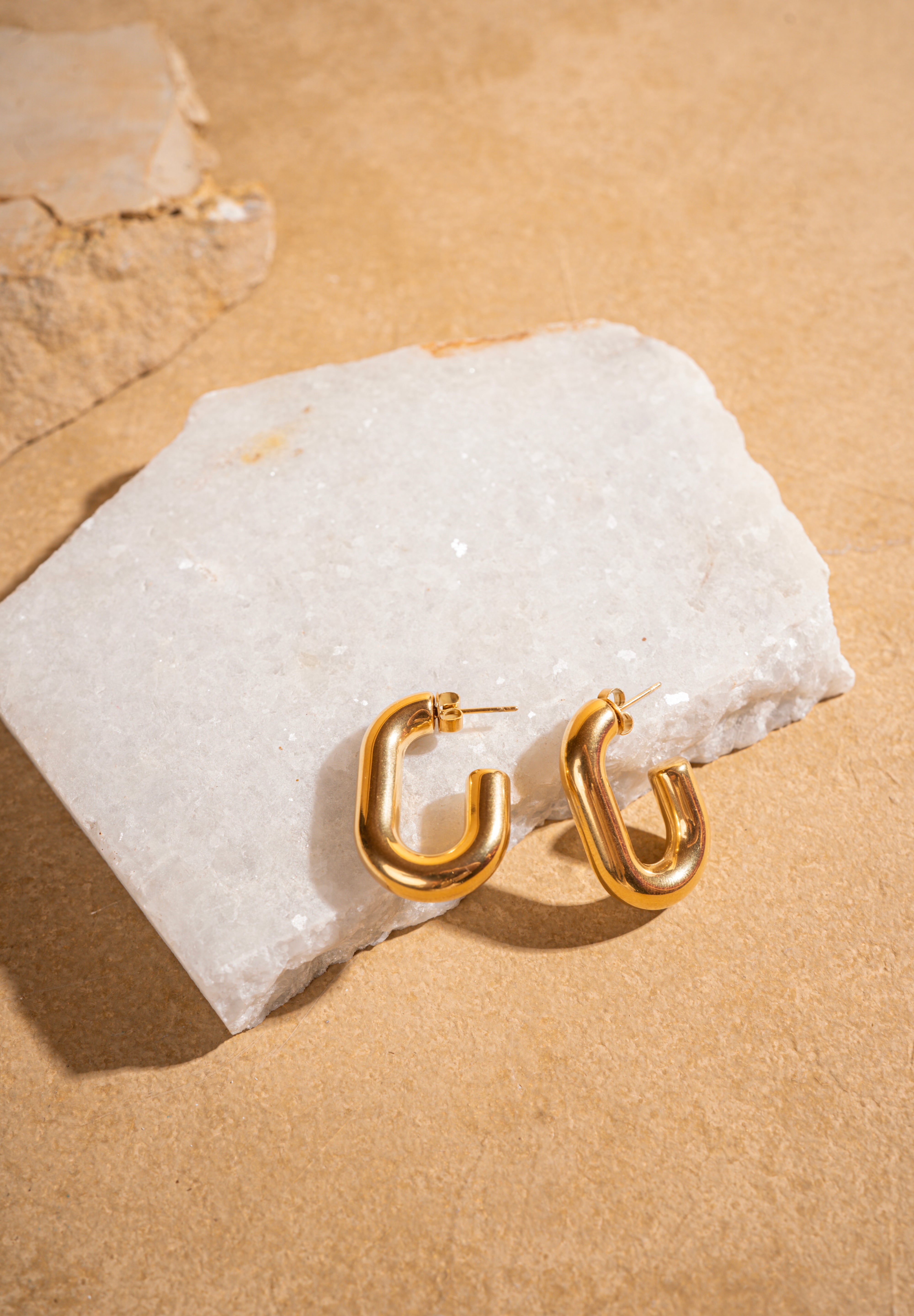 Discover our handcrafted chunky gold hoops, made from the finest quality metal. These versatile hoops transition effortlessly from day to night, and from casual to dressy wear. Featuring thick 2-micron gold plating, they are anti-tarnish and designed to last. Light in weight yet statement-making, these gold hoops are a timeless addition to any jewelry collection.