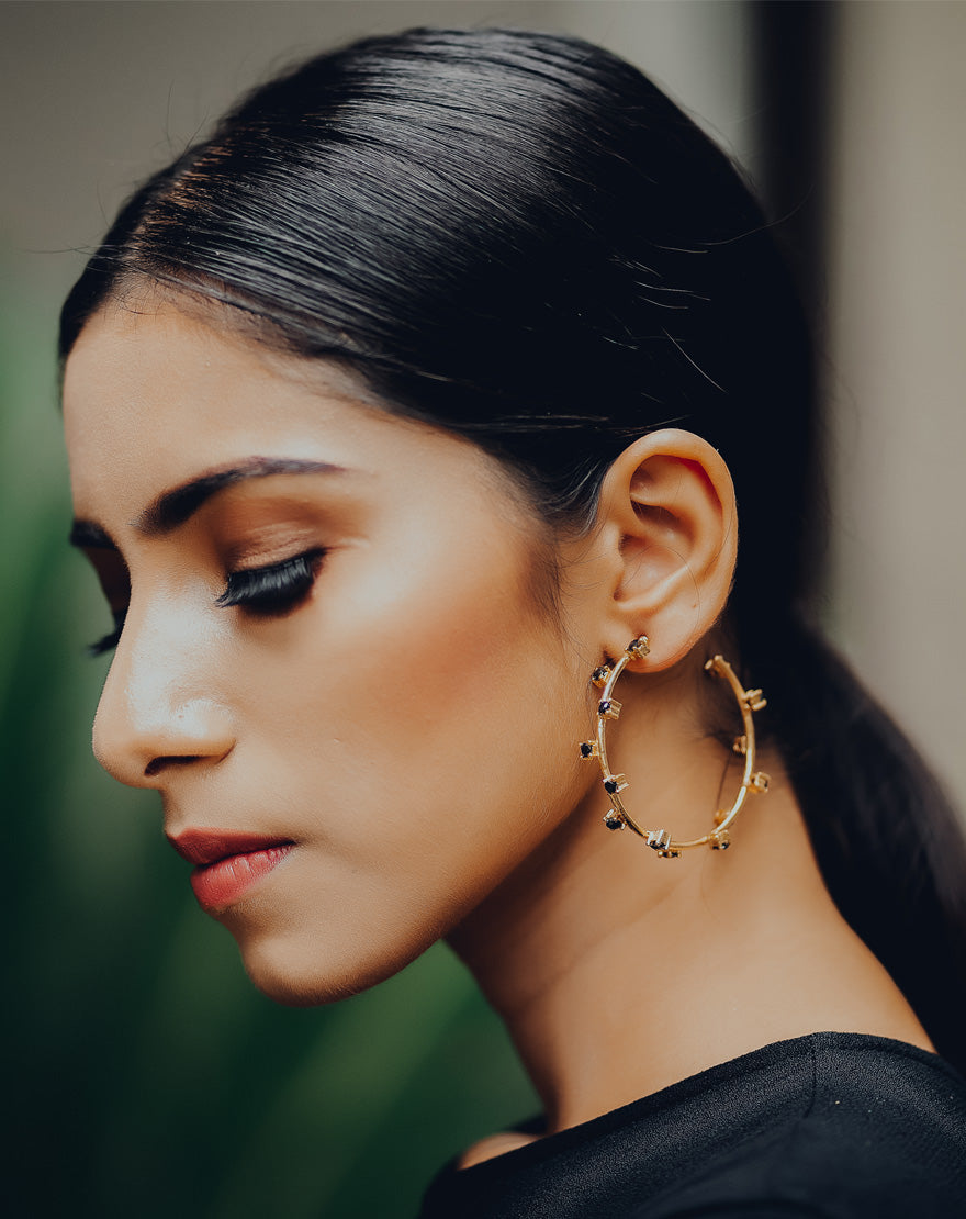Crystal CZ Hoops : Statement making hoops handcrafted using czs and gold plated brass. Perfect for western wear outfits.