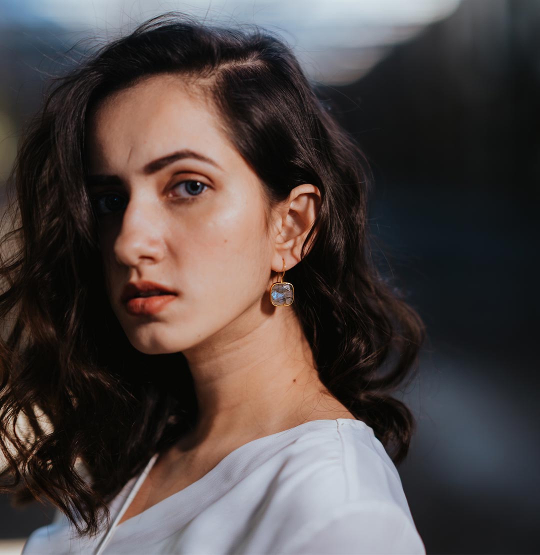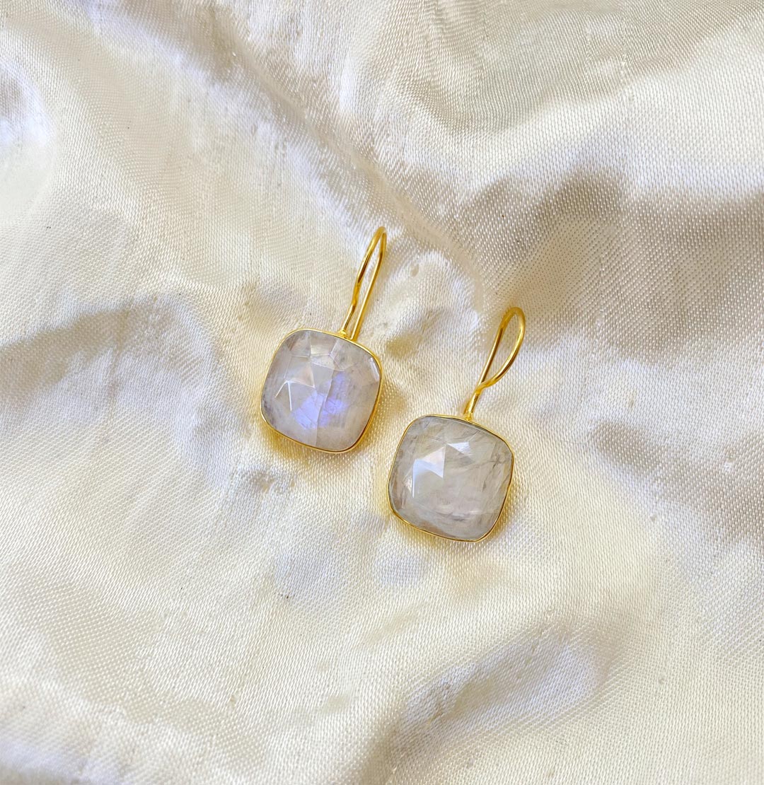Eva Drops – Beautiful handcrafted dainty drops made using natural moonstone and 925 pure silver metal with 18k gold plating. Subtly bold studs which are feather light in weight yet are statement making. A perfect pair of earrings for work wear.