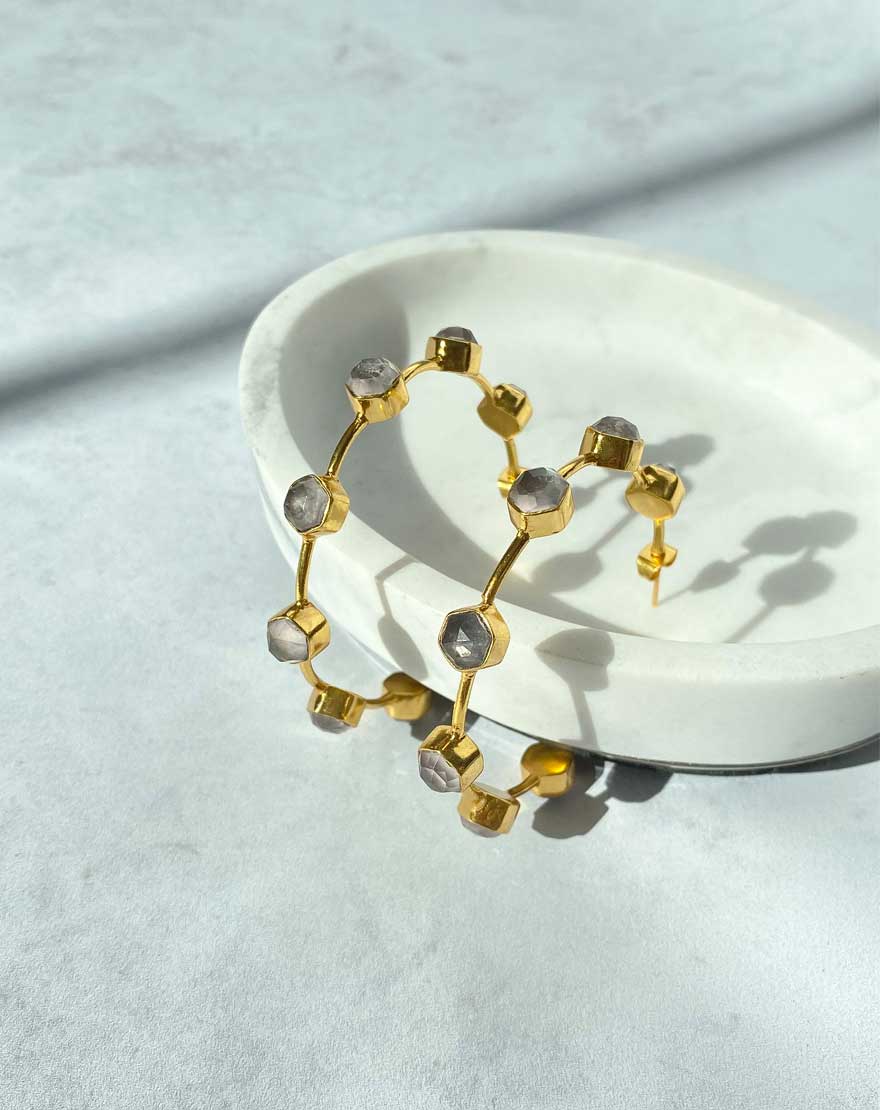 Gemma Hoops - Rose Quartz