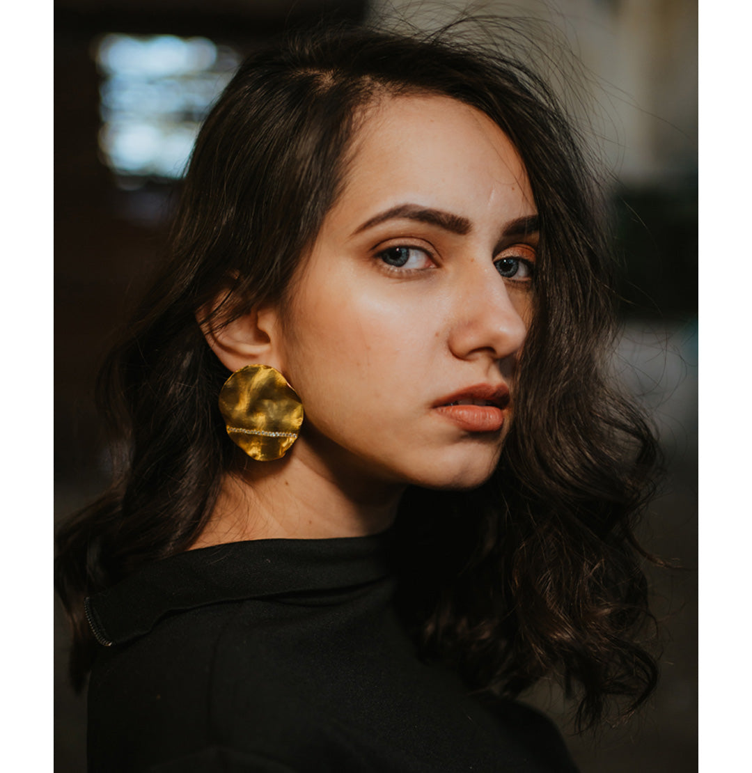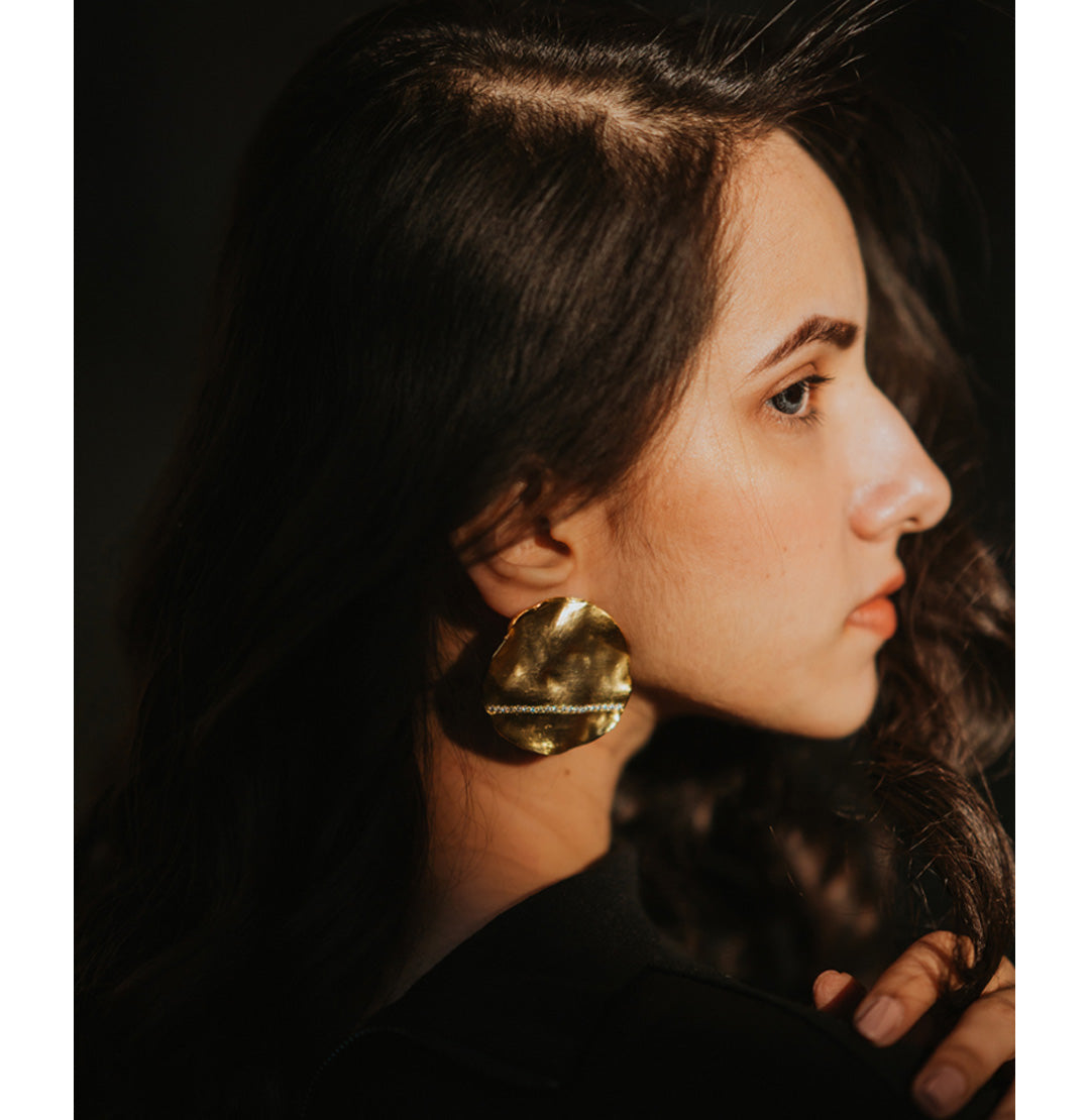 Handcrafted using 1 micron gold plated brass with hammered metal technique and Swarovski stones from our limited edition collection ECHO.