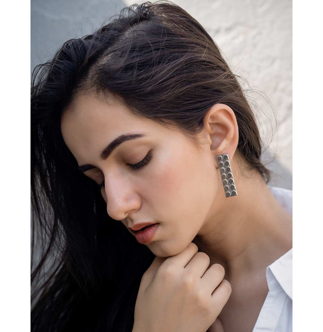 Lego Brick Studs Silver – Handcrafted metal studs inspired from Lego Bricks on silver plated brass, these contemporary studs goes very well with your western look and clean silhouettes. Wear and play Lego!