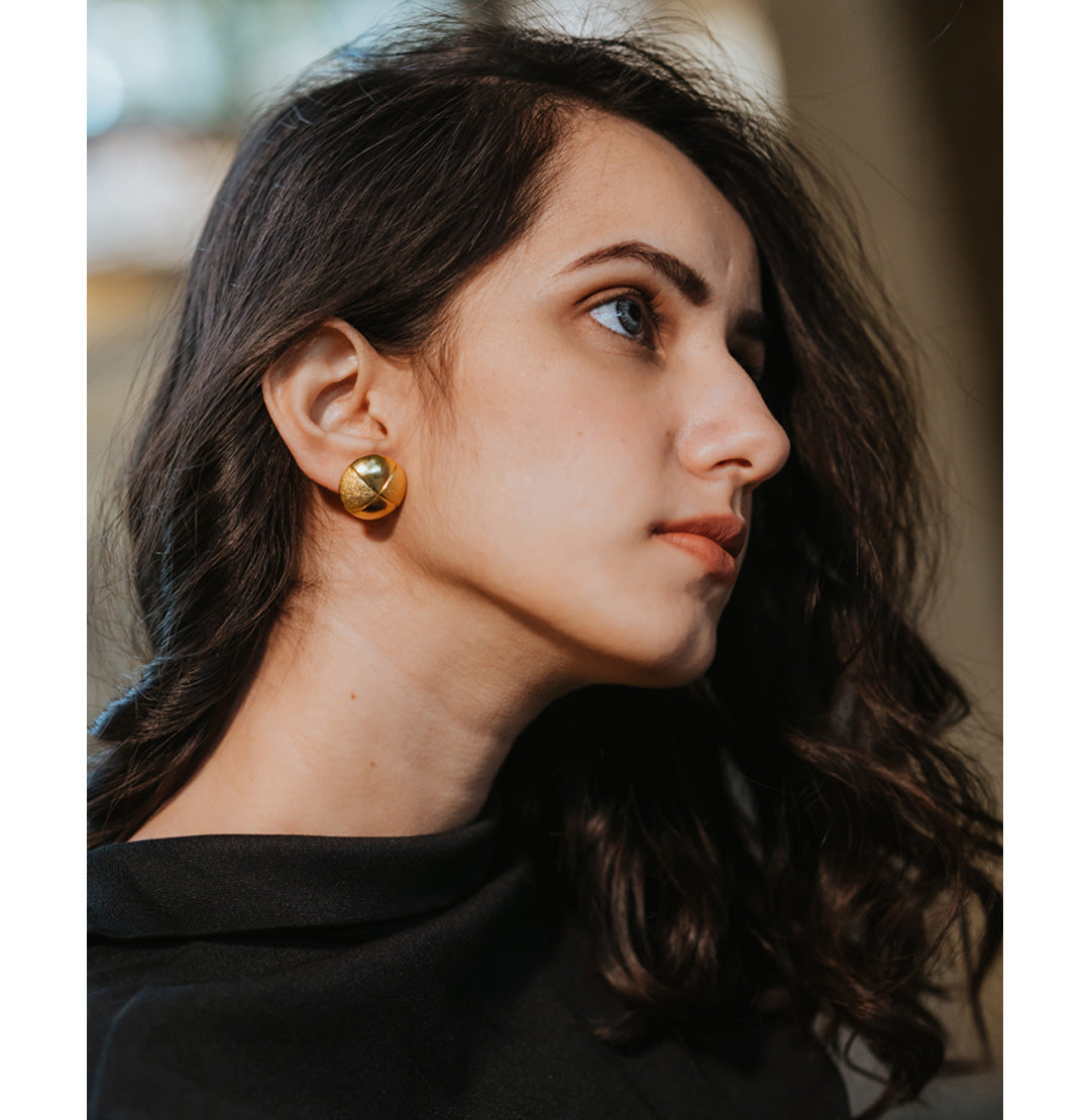 Lina Studs Gold – Handcrafted gold plated brass earrings with hand done texture. Perfect studs for everyday wear. Subtle yet statement making.