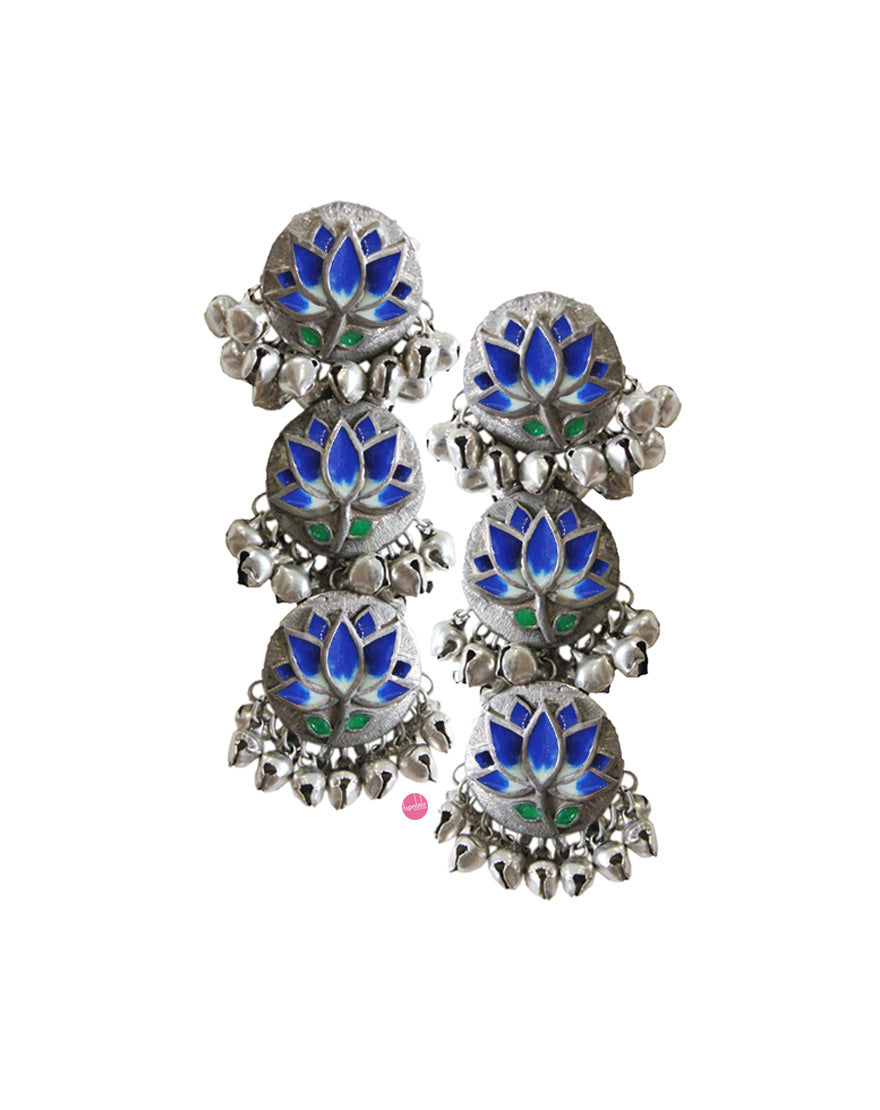 Lotus Enamel Danglers - Blue