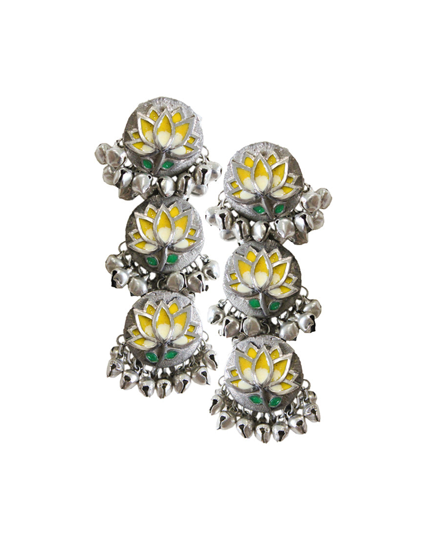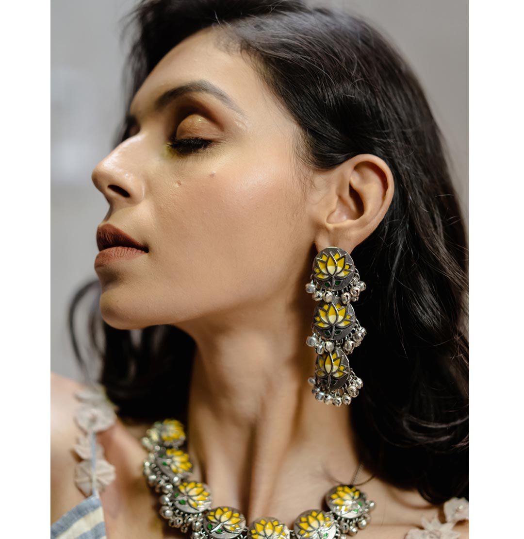 Lotus Enamel Danglers - Yellow
