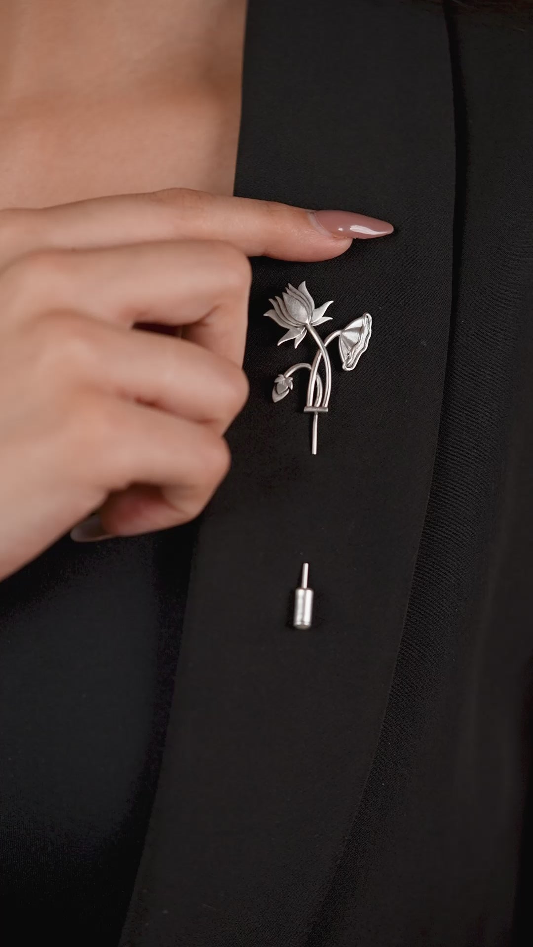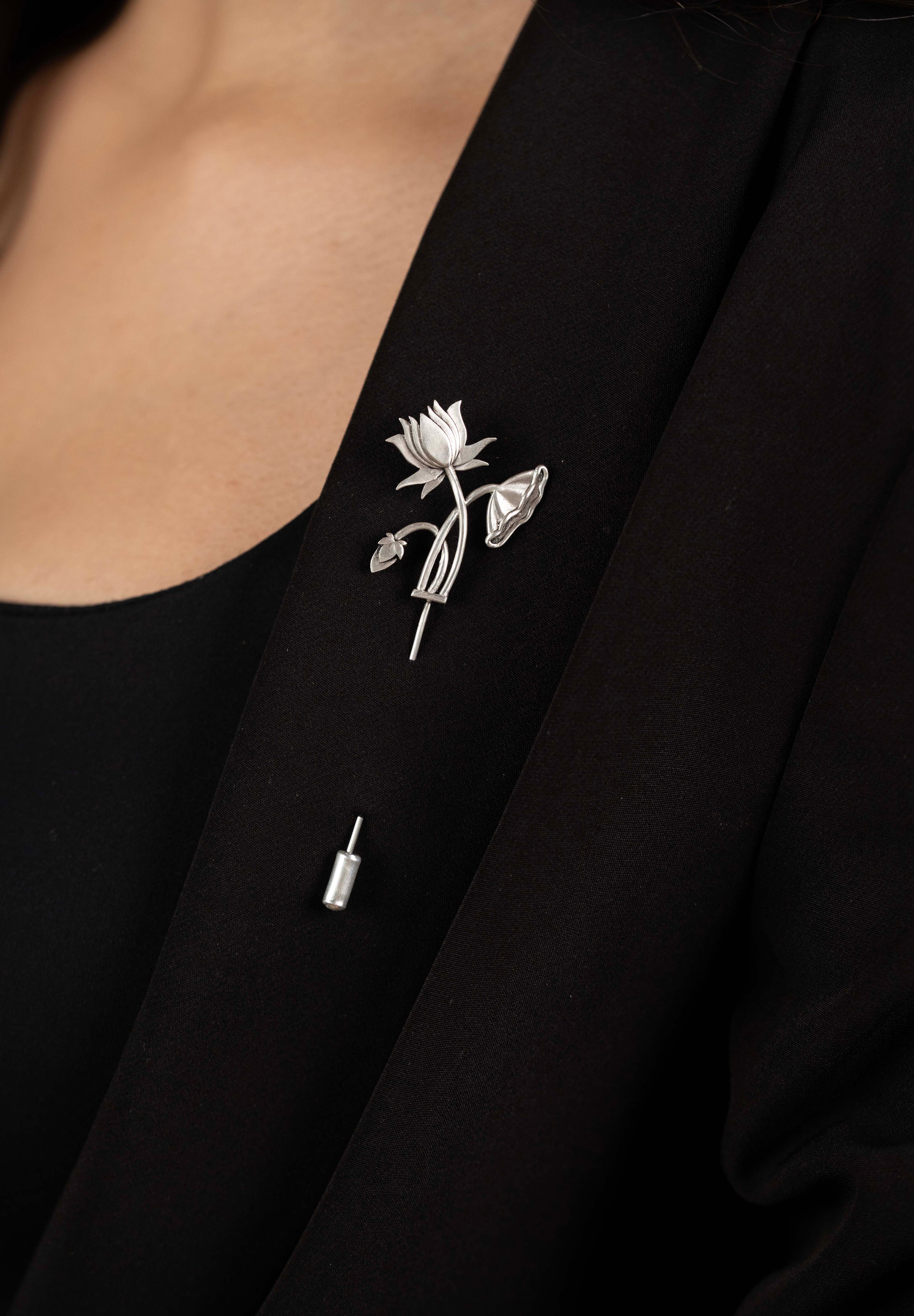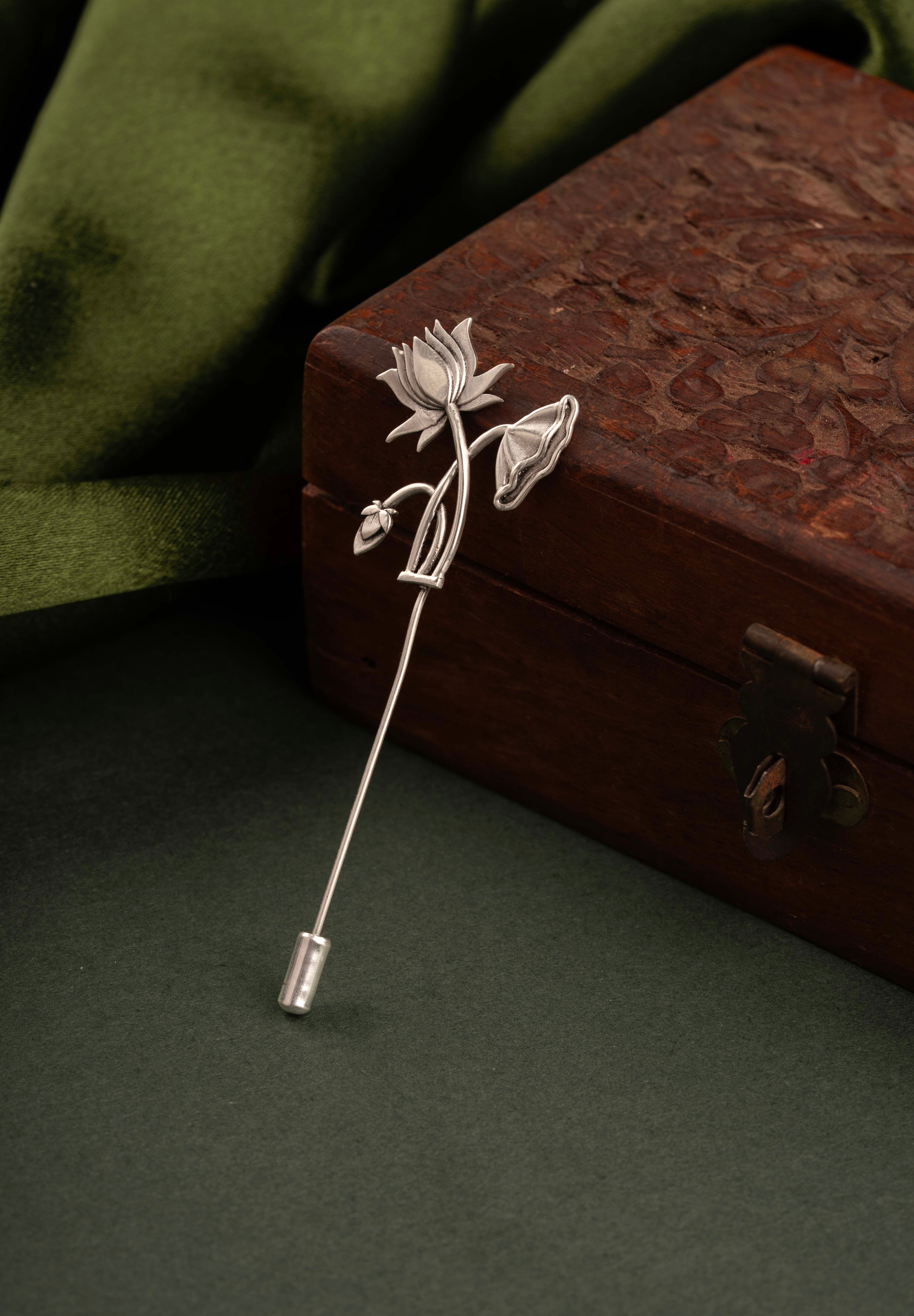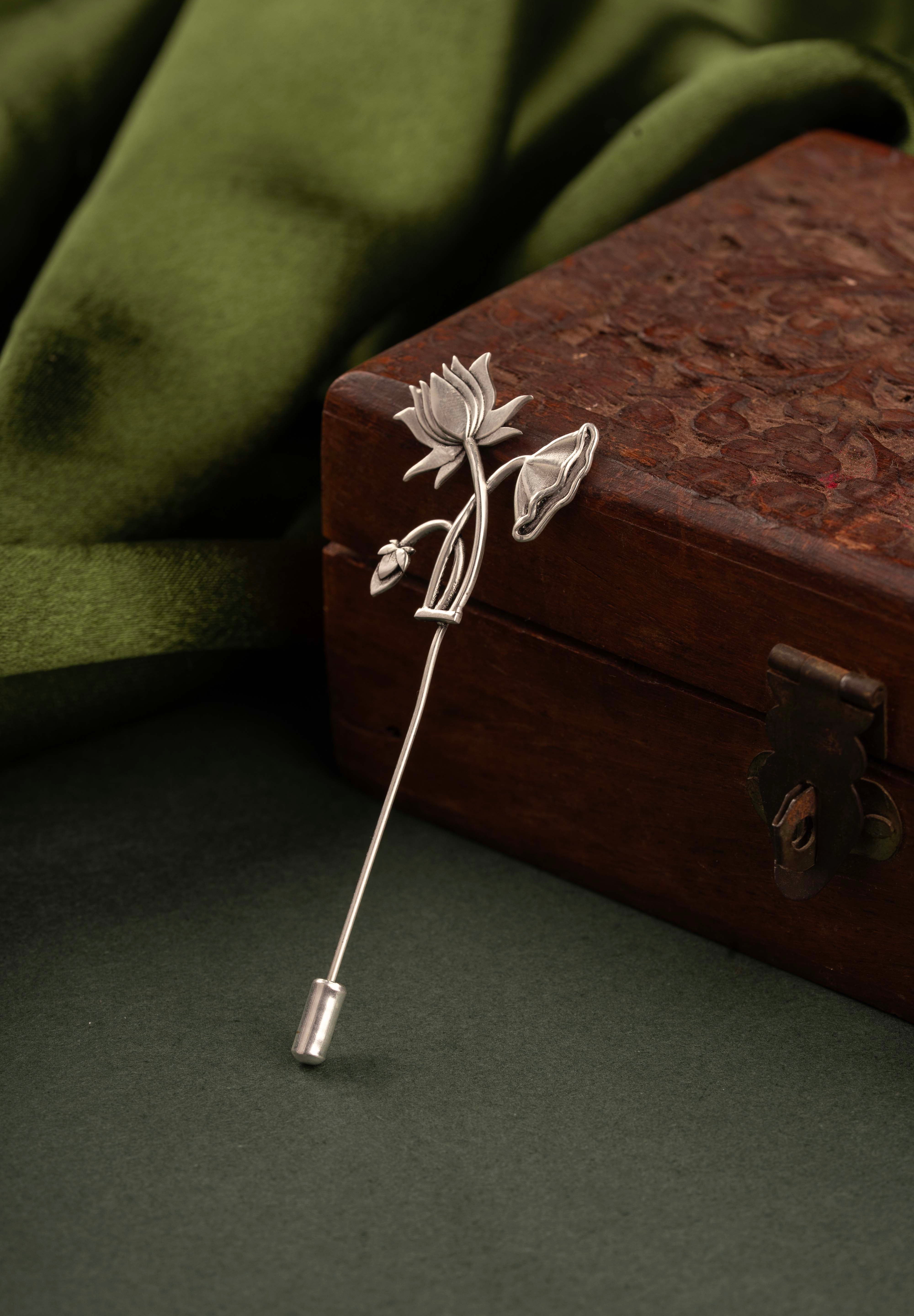 Lotus Lapel Pin – Pichwai Inspired Silver Lotus Brooch