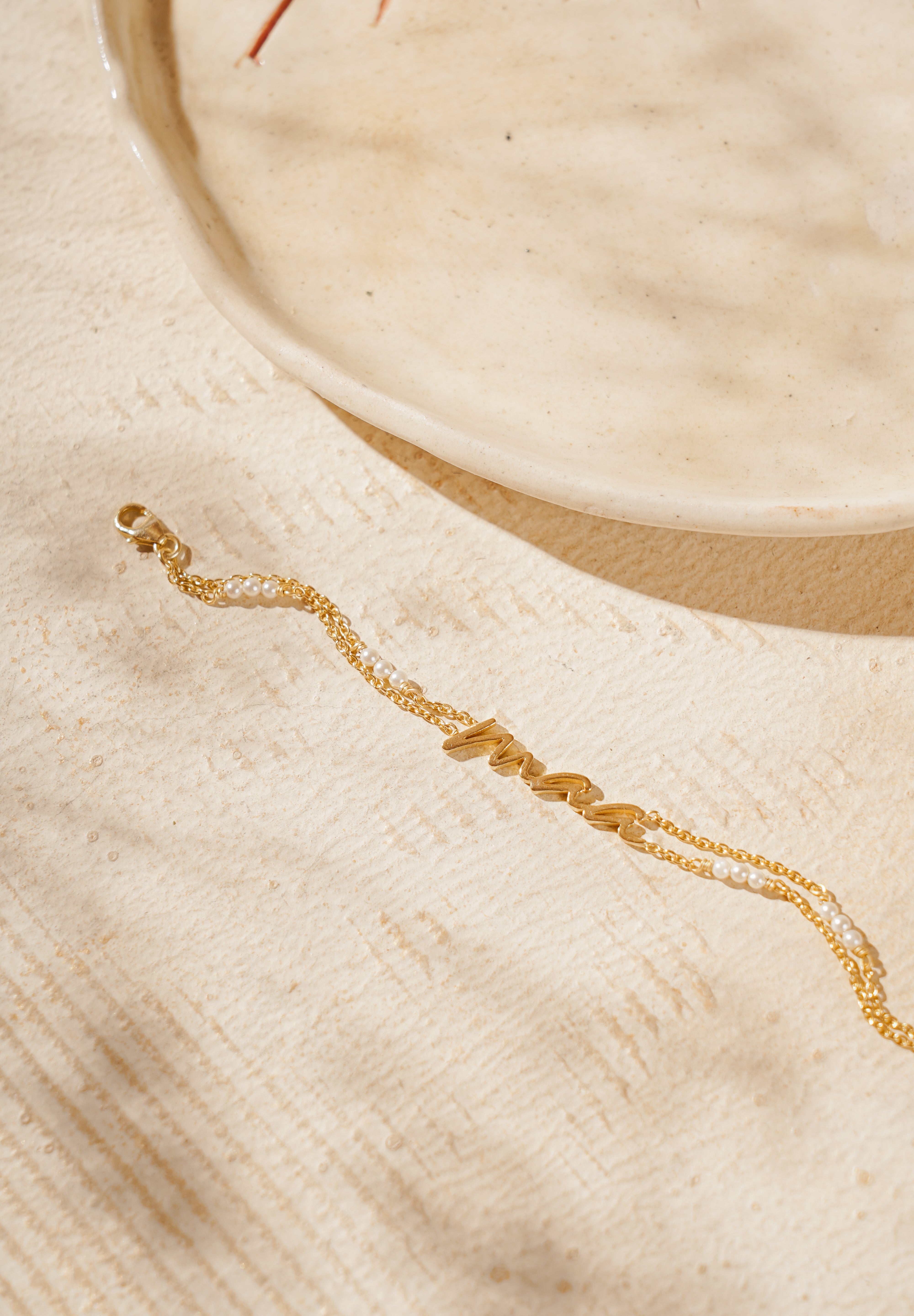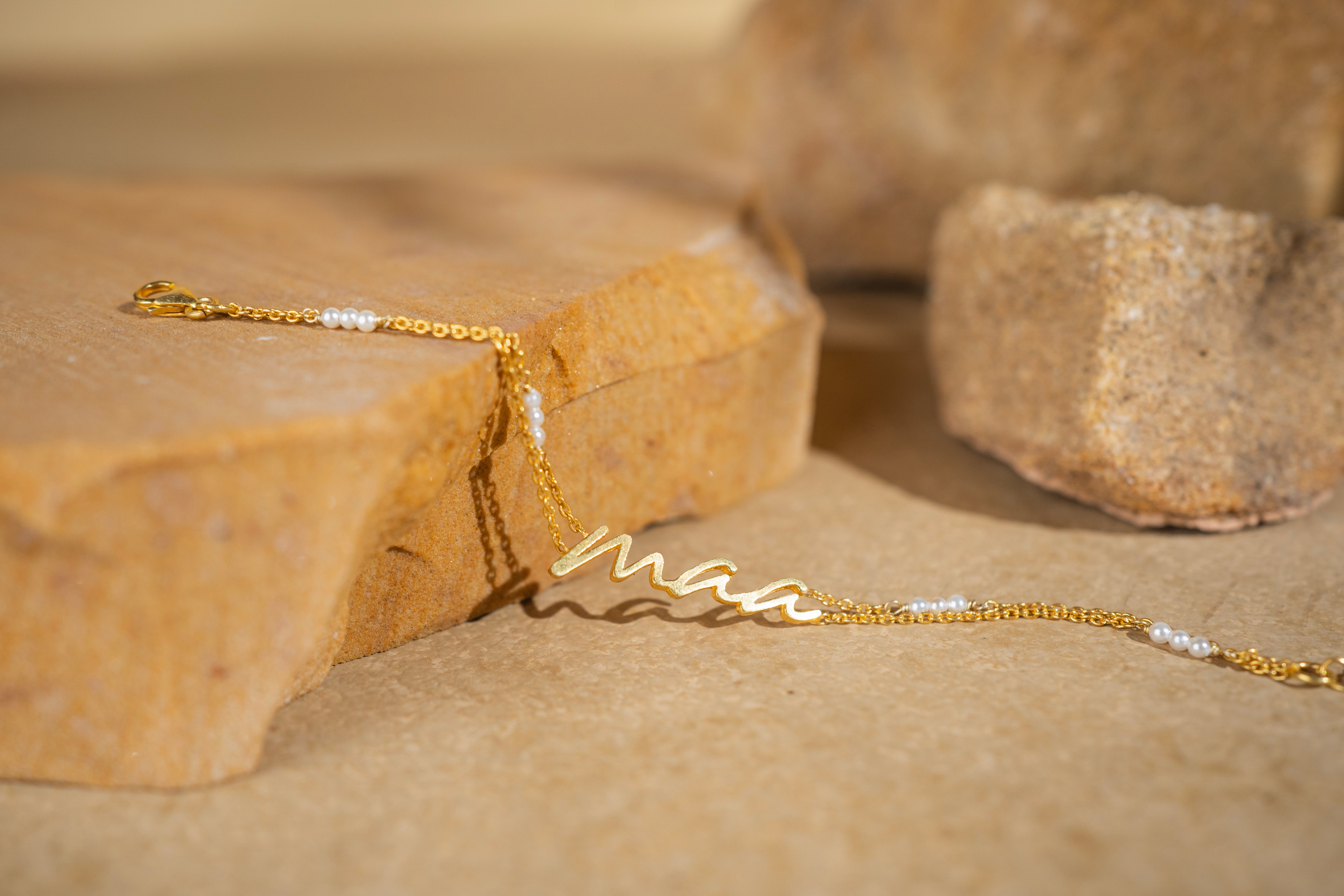 Celebrate the protective bond of motherhood with our exquisite Mother of Pearl Bracelet. Each piece is lovingly handcrafted, featuring 'maa' delicately inscribed on sterling silver with 18k gold plating and tiny pearls, symbolizing eternal maternal love. Embrace the nurturing embrace of nature's 'nacre' with this timeless treasure. Shop now and cherish the eternal connection between mother and child.