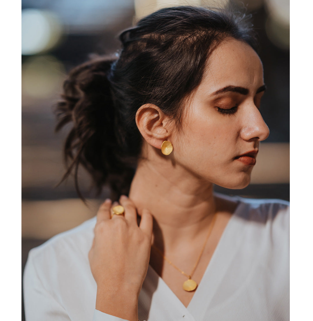 Olivia Studs – Beautiful everyday wear dainty stud earrings inspired from a lotus leaf handcrafted using pure silver 925 and 18k gold plated.