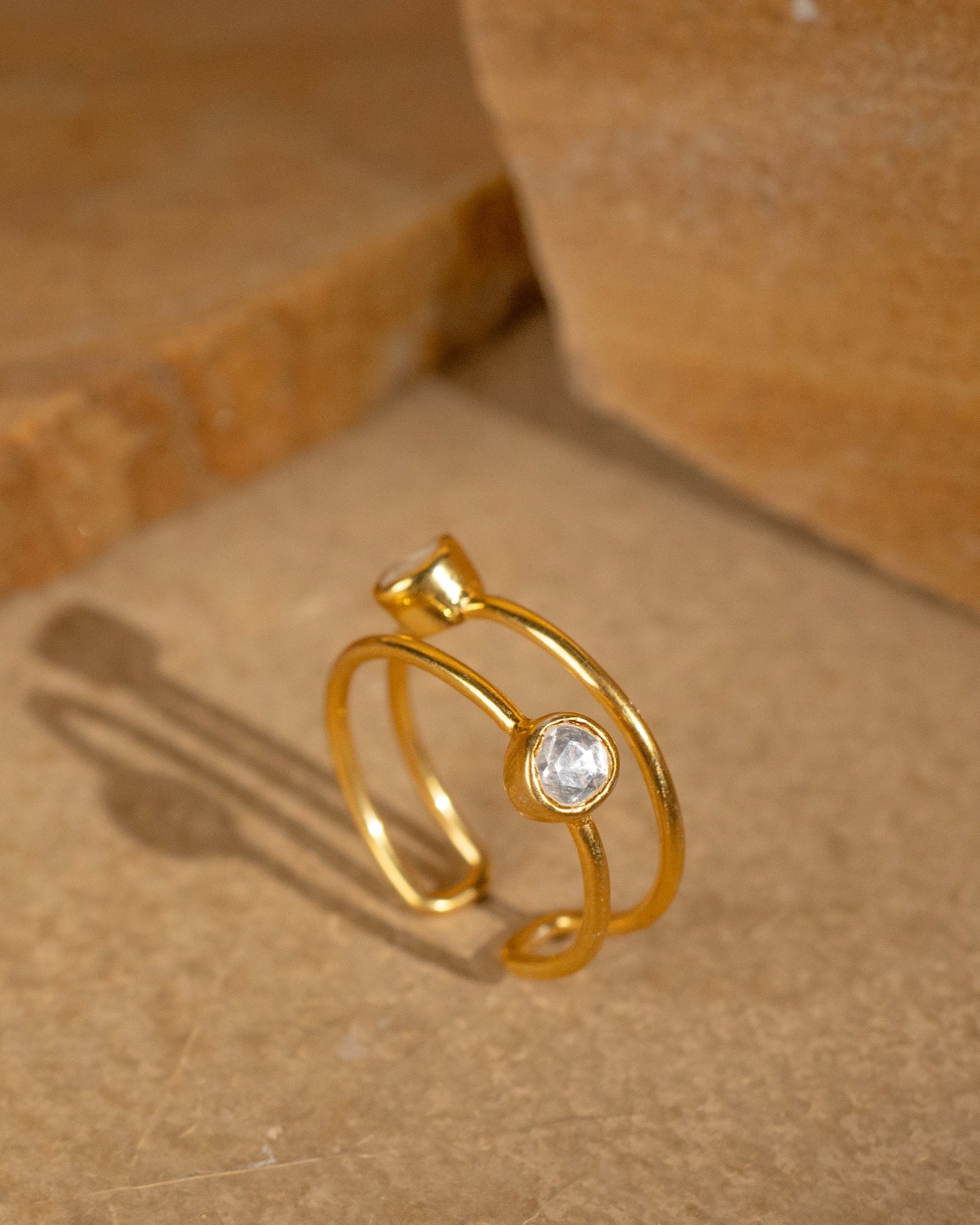This ring is handcrafted in 925 sterling silver, finished with a thick layer of 18K gold plating, and designed for both comfort and edge. Whether stacked or worn solo, the Orbit Ring makes an effortless statement — bold in form, soft in finish, and unmistakably modern. This ring is adjustable in size.