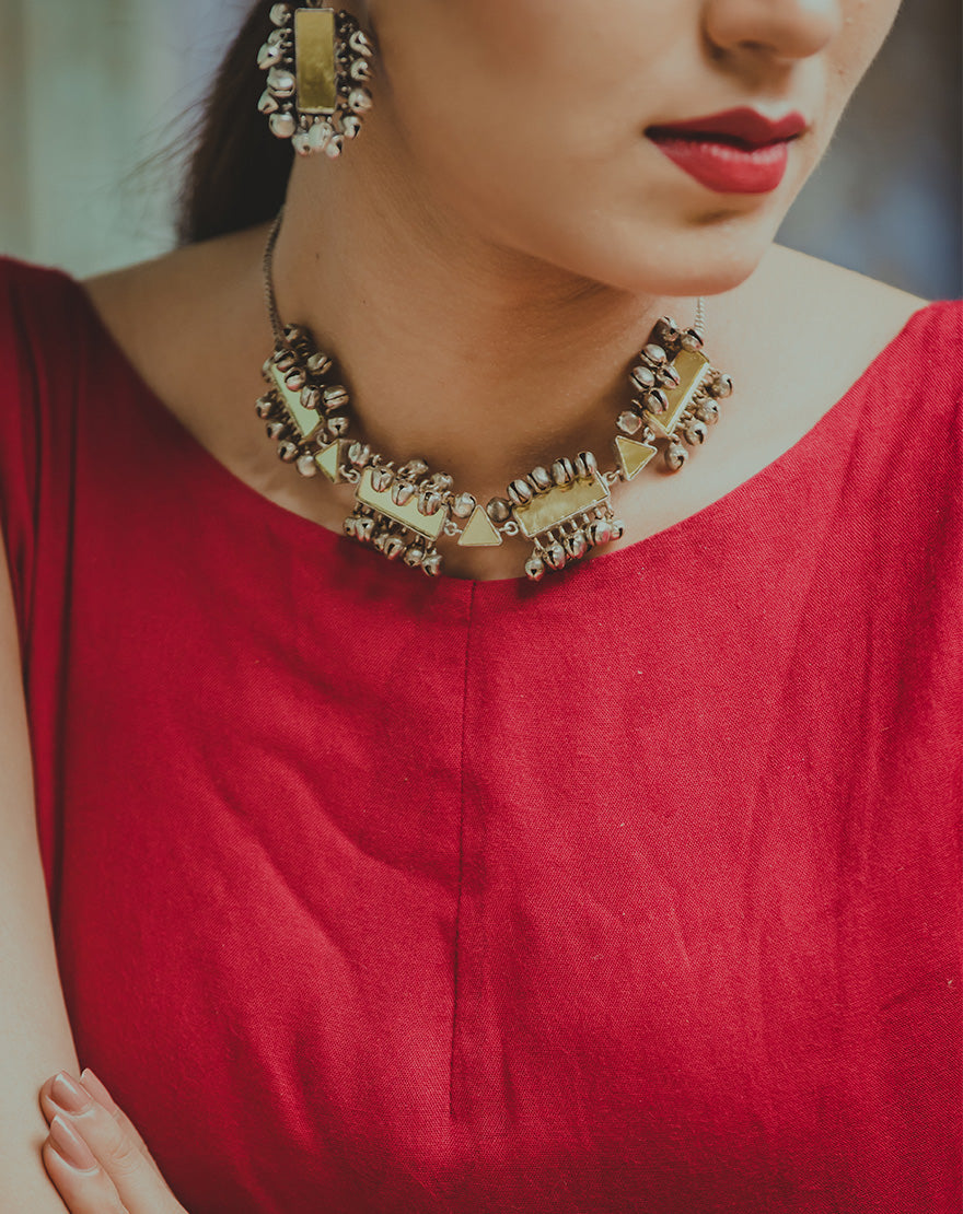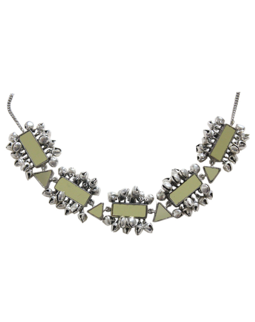Silver Mirror Choker : Statement making choker handcrafted using silver plated metal with mirrors and ghunghroos