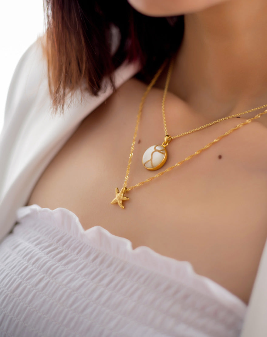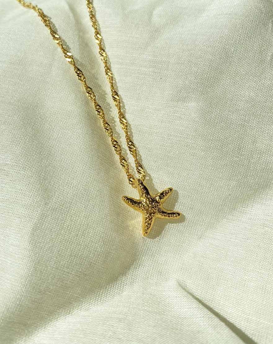 A perfect summer necklace for beach wear or resort wear with handmade metal starfish on 1 micron gold plated (18k) stainless steel (which is allergic free and nickel free) Layer it with our other neckpieces or just wear it as a single statement piece.