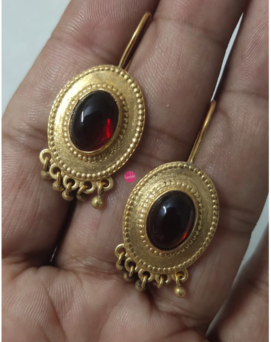 These stunning antique garnet earrings are as seen in the movie Hocus Pocus 2 on Kathy Najimy who plays Mary Sanderson in the movie. These earrings were inspired from the original Hocus Pocus movie which was released in 1993. These earrings are handcrafted using 18k gold plated recycled brass with an antique gold finish and a beautiful 12x10mm Garnet stone in the center.