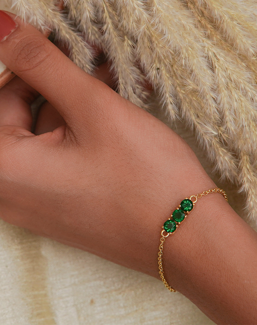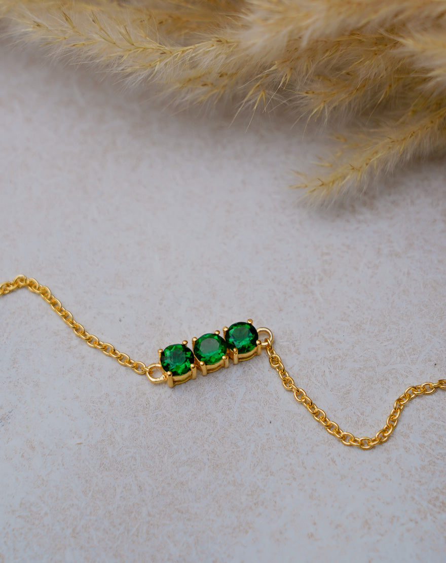 Zoe Bracelet – Delicate handcrafted bracelet made using gold plated sterling silver and emerald hydro stone perfect for everyday wear.