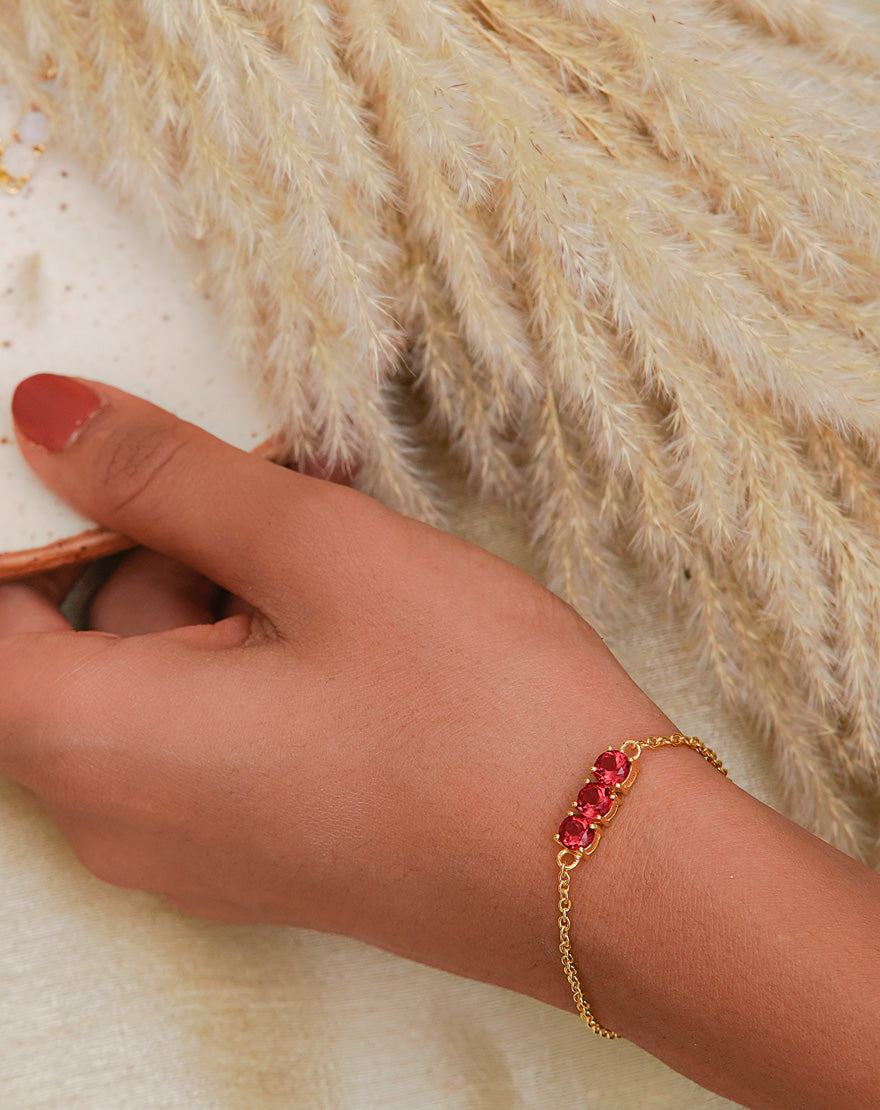 Zoe Bracelet – Delicate handcrafted bracelet made using gold plated sterling silver and ruby hydro stone perfect for everyday wear.